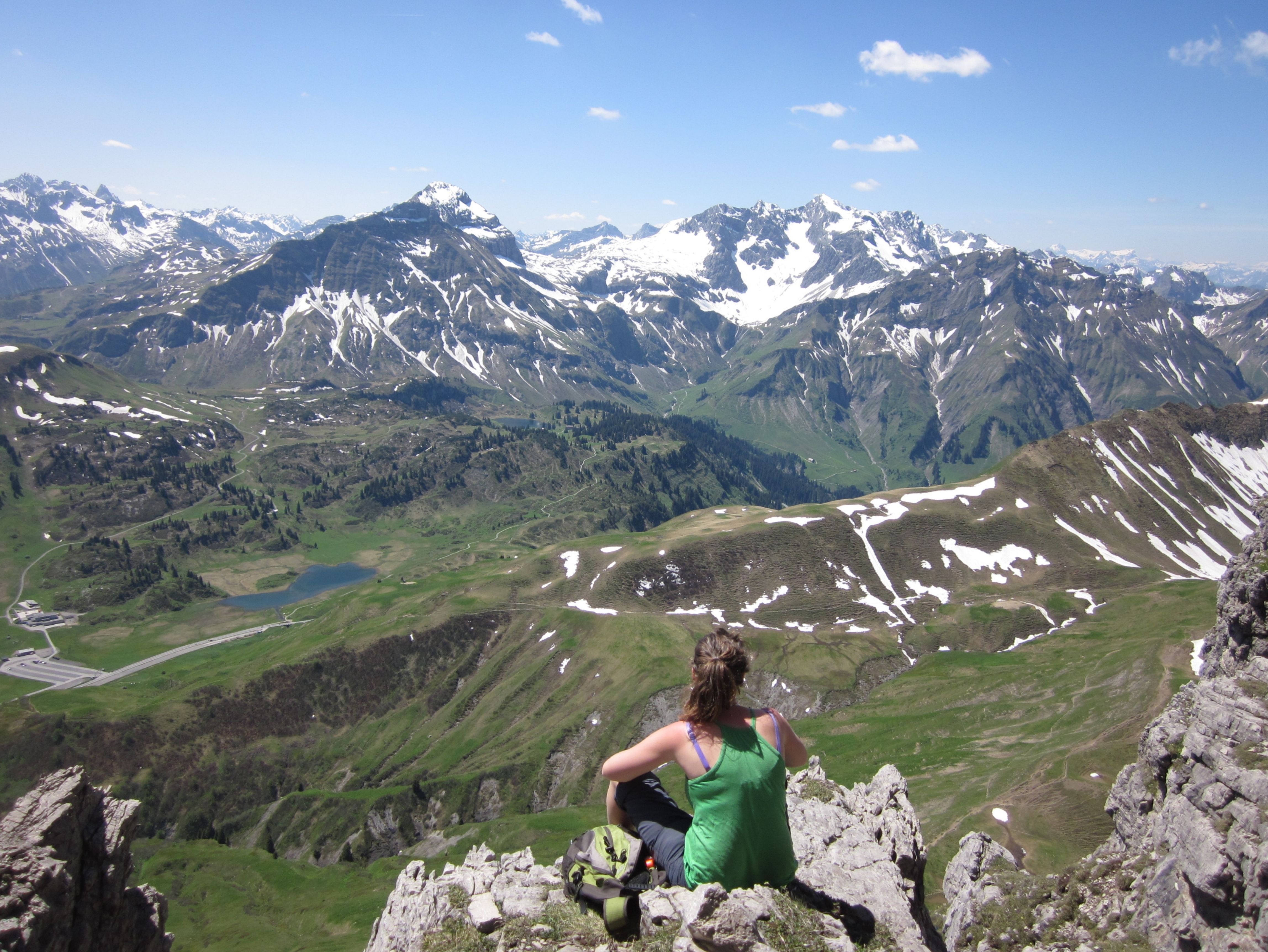 The past 2 weeks have felt like a non stop holiday, normally on roadtrips there are days of just driving and no sights en route but there’s been something around every corner and I’ve loved it. We stayed for 2 nights right on the shores of Lake Korbersee, on the 1676m pass, the days were scorching hot and nights cool as a cucumber. It was the final area we were going to explore in the Bregenzerwald area so we did a few hikes. One of which was up Widderstein’s 2533m summit, it was seriously steep in areas and we were basically rock climbing up which was enough for Craig’s height phobia, and to be fair I was pretty zapped. Hikers walked past us with helmets and ropes which made us feel a bit unequipped – especially as we passed plaques in memory of people that had died on the route. We had to cross a few sections of snow, which were massive slabs dripping into dark crevasses below. We probably made it 2300m high and the views there were phenominal, mountains EVERYWHERE!! Snowy peaks all around us and fainter ones behind them too, it was quiet jaw dropping scenery and certainly made us question the best mountains we’ve been to in the world – the jury’s still out but let’s just say it was like walking through the Himalayas again – even more so as the hikes round here always seem to go via a restaurant in the middle of nowhere. We heated water in the solar shower while hiking and had to mix it with river water as it was too hot, who would of thought it eh?