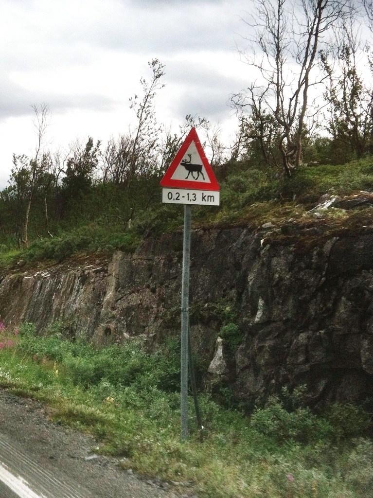 The next day, we were driving along and Craig said “oh, there’s something ahead, maybe a sheep, or rubbish, oh wait, ITS A REINDEER!!!” Wahoooooooo! It crossed the road right infront of us. It looked like a young one with small furry antlers. I was so happy – they exist!! Another 20km up the road and we saw another one! This one just slowly trotted along the road ahead of us, it had such funny legs, all dangly and clumsy.