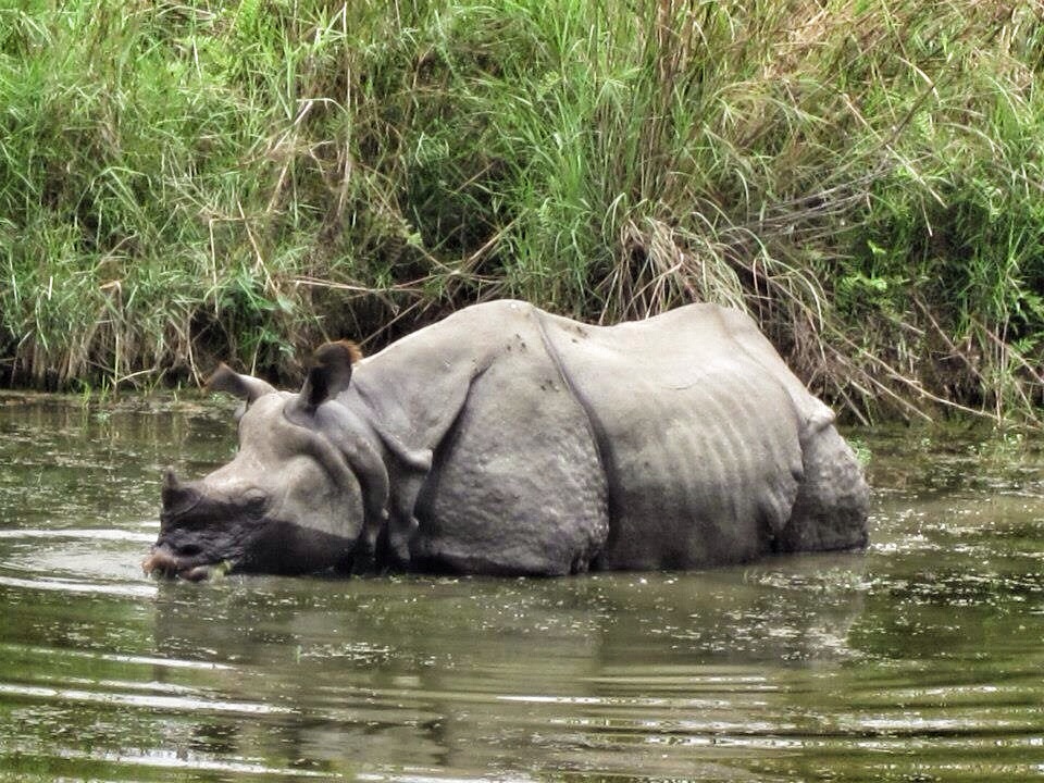 The day before, the guide saw 7 Rhinos, so we had high hopes. We started the trip in the early morning, and by 12pm we still hadn’t seen anything. It was unbearably humid, and we were traipsing through long grass; when I say long, I mean taller than us. It was in this grass that the guide quickly jabbed his hand towards us to stop us abruptly. Then I saw, a glimpse of a Rhinos bottom run past, and a baby Rhino followed, quickly stampeding through the grass.