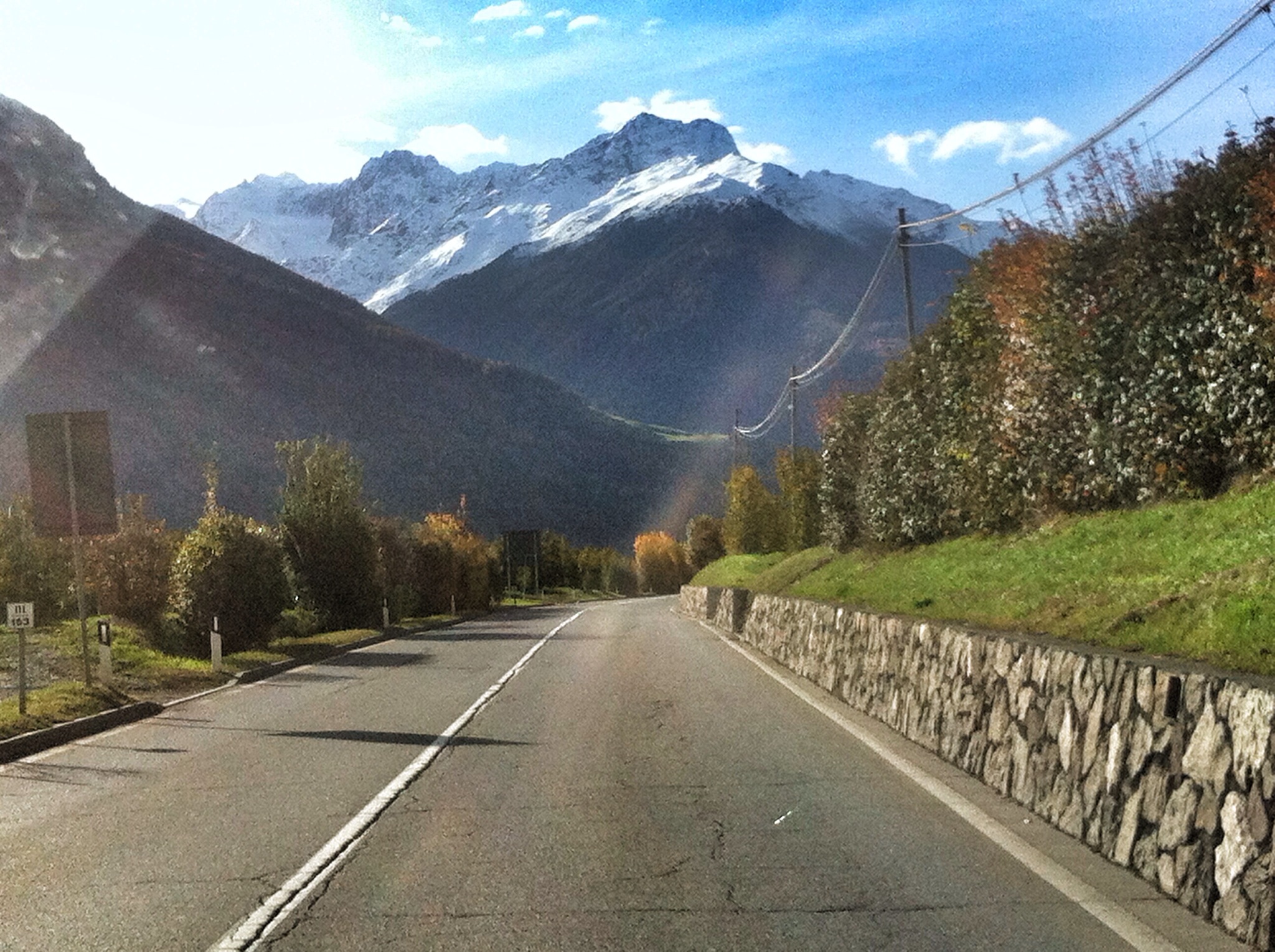 The highlight of the day though was the Fruelapass, at 2380m it’s our highest on this trip. It closes in winter so we were lucky to still be able to drive it. They have a train through a tunnel nearby that takes cars across in winter, I dread to think how much that would cost. We drove past a lot of snow, 1-2 foot had been ploughed onto the edges of the road. We rushed up to catch the sunset and although a lot of the mountains were shady, it was the price we had to pay to see the other side of them, which glowed in the setting sun. The snow capped peaks were a beautiful pink colour and led off into the distance. It was freezing at the top, one lake had half frozen while another had totally frozen and been covered in snow so you wouldn’t even know it was there.