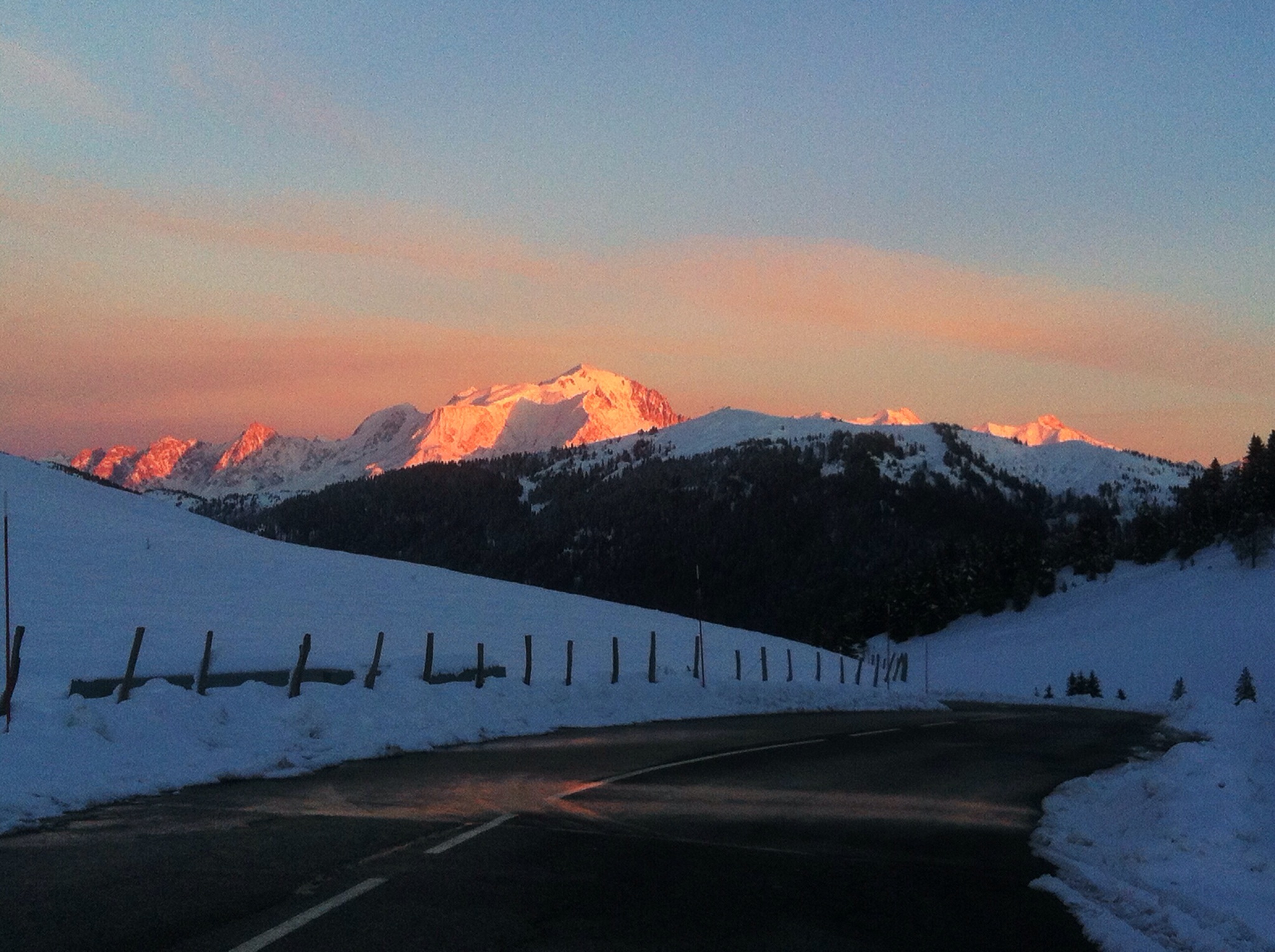 That evening we drove up another snowy pass and caught an amazing sunset. The mountains in the distance turned as pink as candy floss. Above us was an impressive Utah style mountain which had a gradual slope up and then sheer rock edges that glowed orange in the sun.