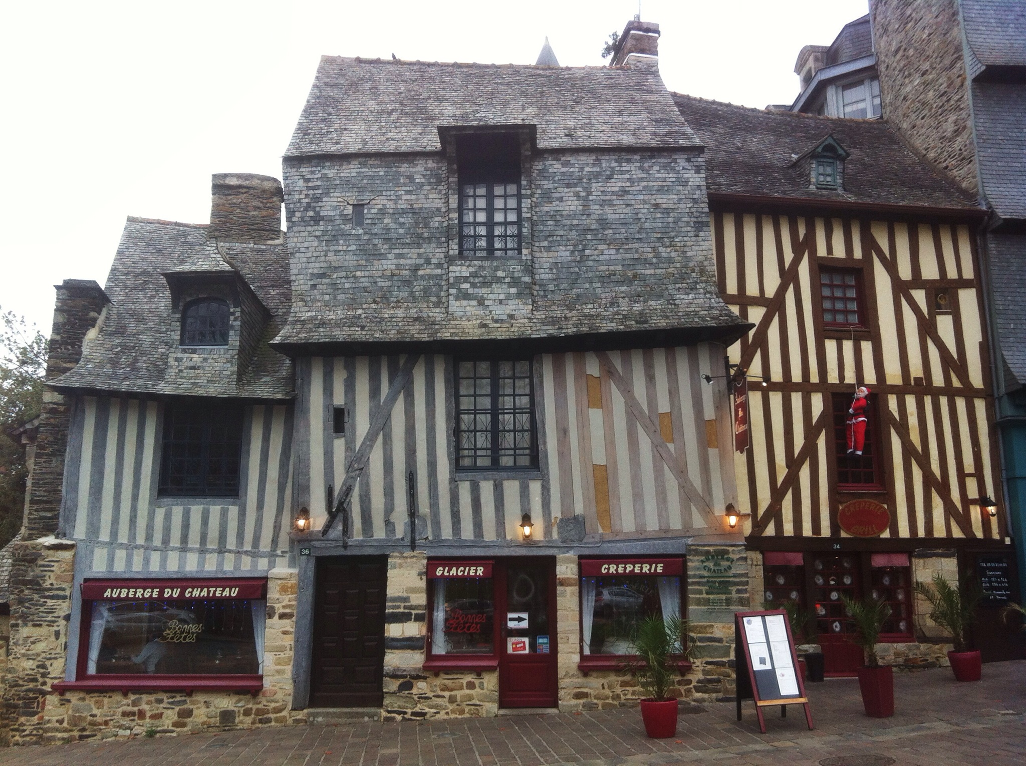 After the festive markets we drove north to Vitre. The town looked like a movie set; wonky half timbered houses were leaning towards the narrow alley and slanting down the roads. Roofs were rickety and all various shapes and sizes. We followed some cobbled lane ways and arrived in front of a huge gothic chateau. It had numerous spires and turrets that looked like witches hats, it was quite the fairy tale castle with thick walls surrounding it.