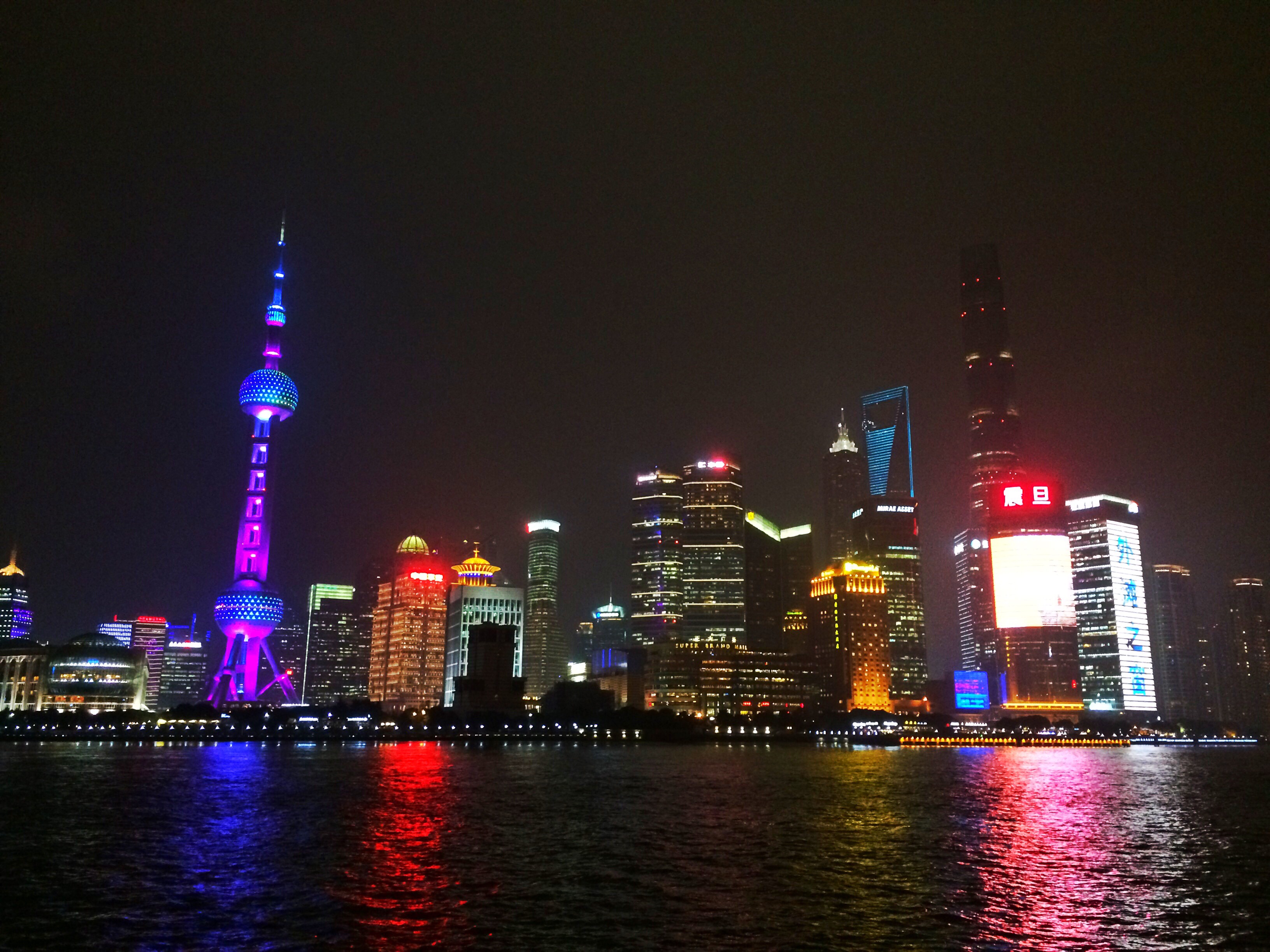 By now it was dark so we went back to The Bund area to see it all lit up at night. We found a perfect street stall for a well needed dinner en route. I got egg fried rice which was so tasty and with all the ingredients on the stall in front of us I could point to the meat and say no and point to the veg and then smile and give the thumbs up, it worked a treat. Now we were really cold and had nowhere to sit and eat our food so we wondered up a few blocks to The Bund and had a meal with a bloody good view, god knows how much the restaurants round here charge to eat with this view, ours cost £2 and a few fingers from frost bite.