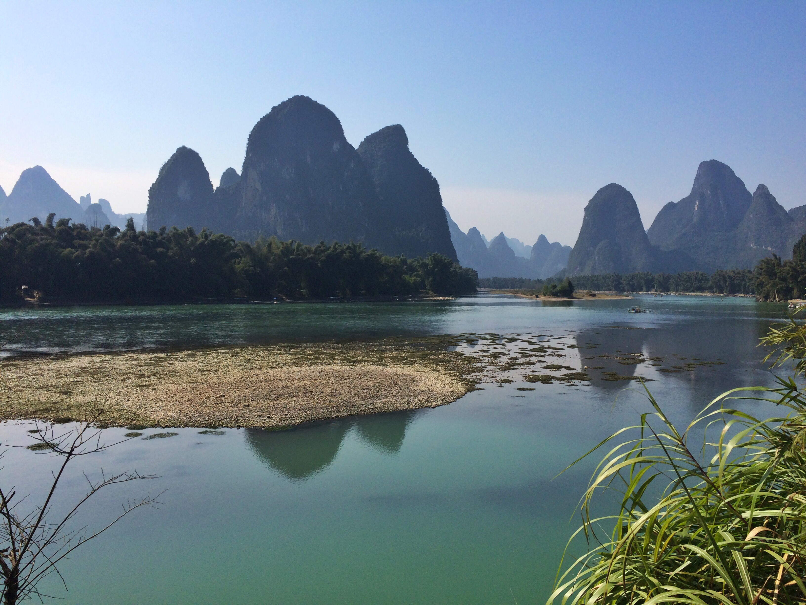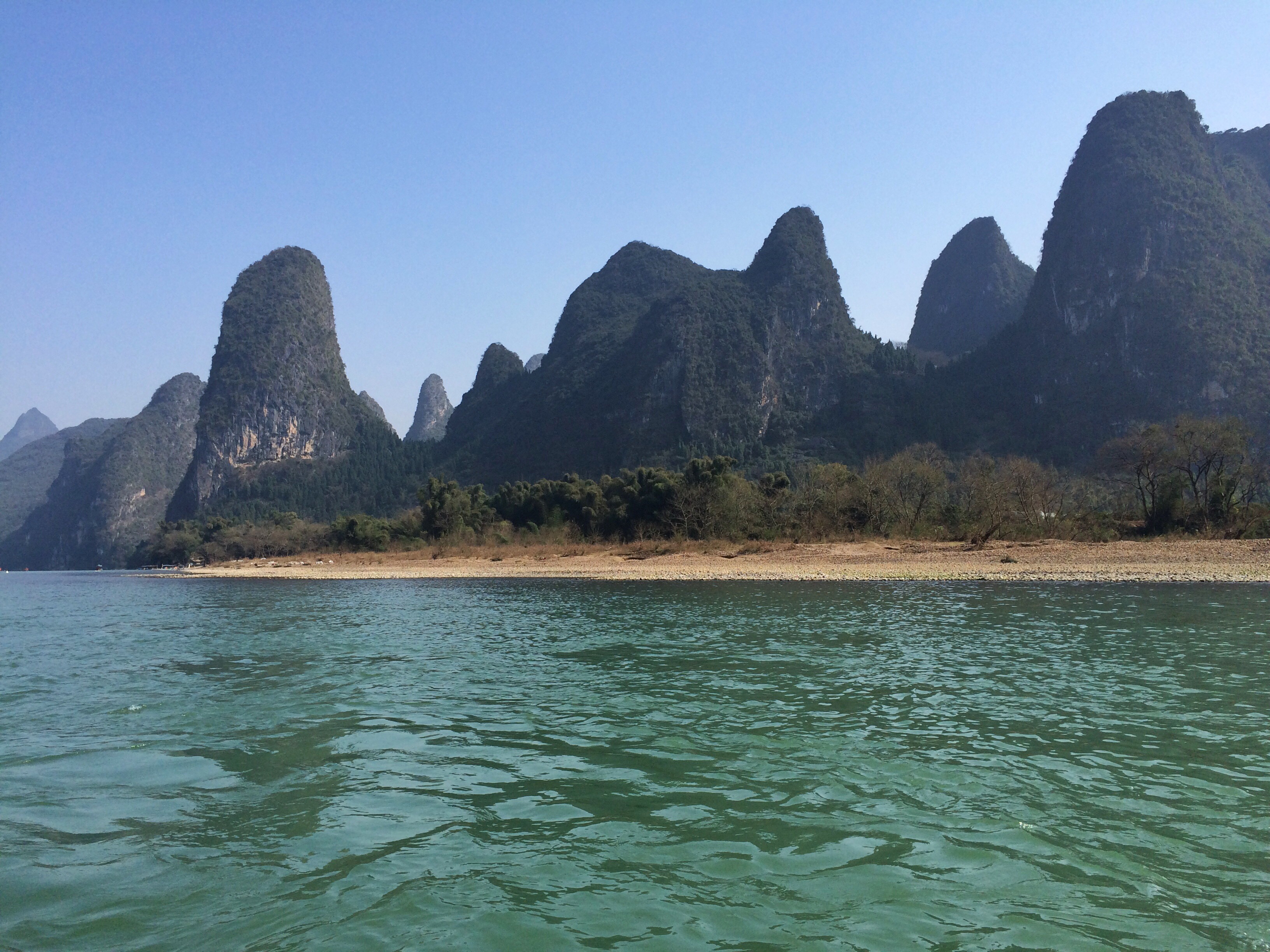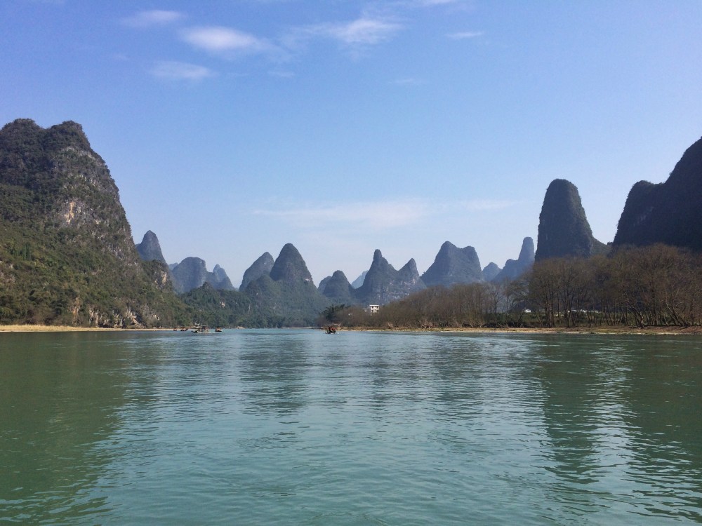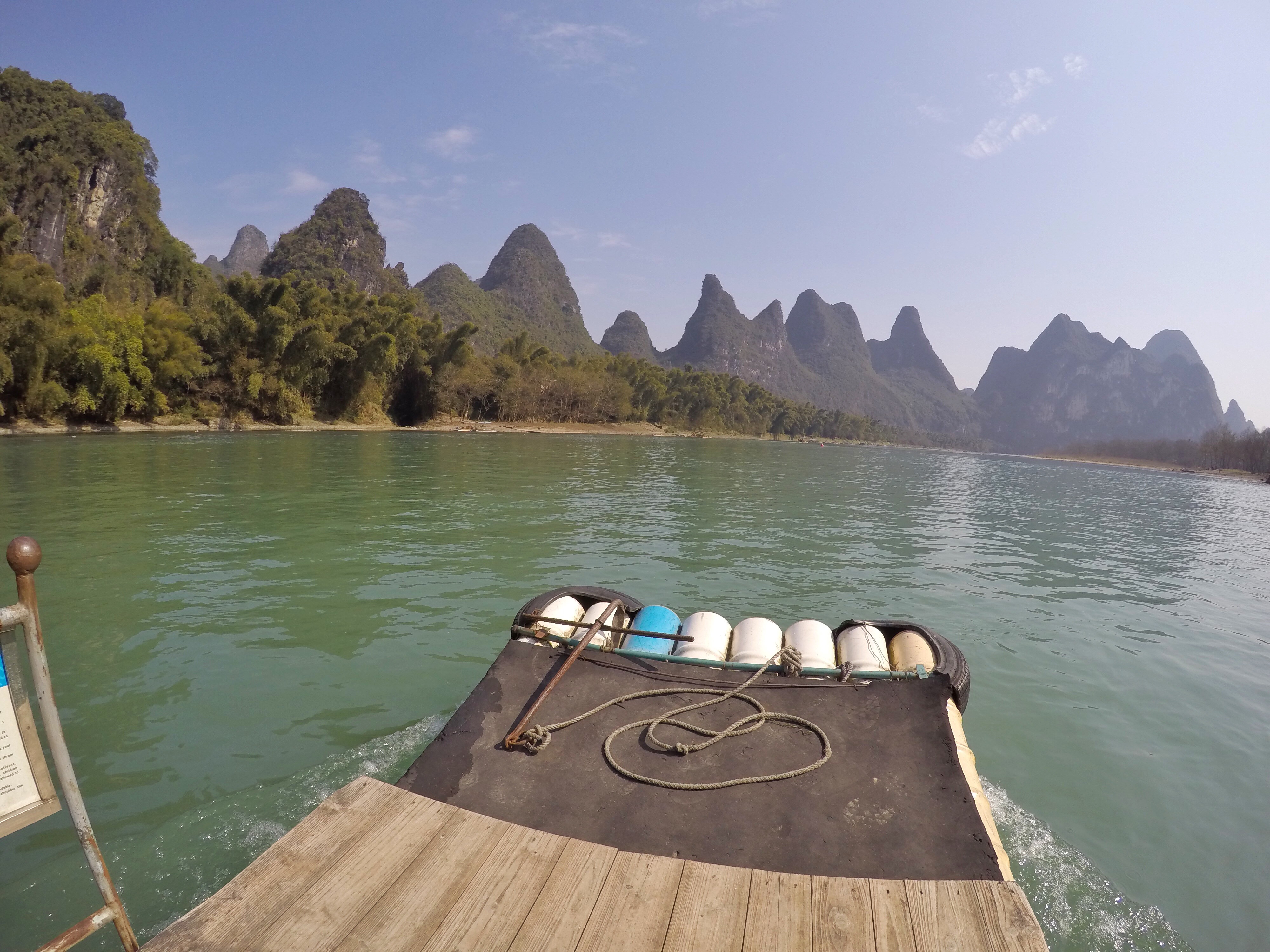 Craigs birthday was falling on a blue sky day so we wanted to take a boat ride along the famous Li River to see the unique pointy mountains that line its banks and spread into the countryside. We had a choice of a large double decked boat with potentially 100 or so other people, or a bamboo raft for 4 people. So we picked the latter.