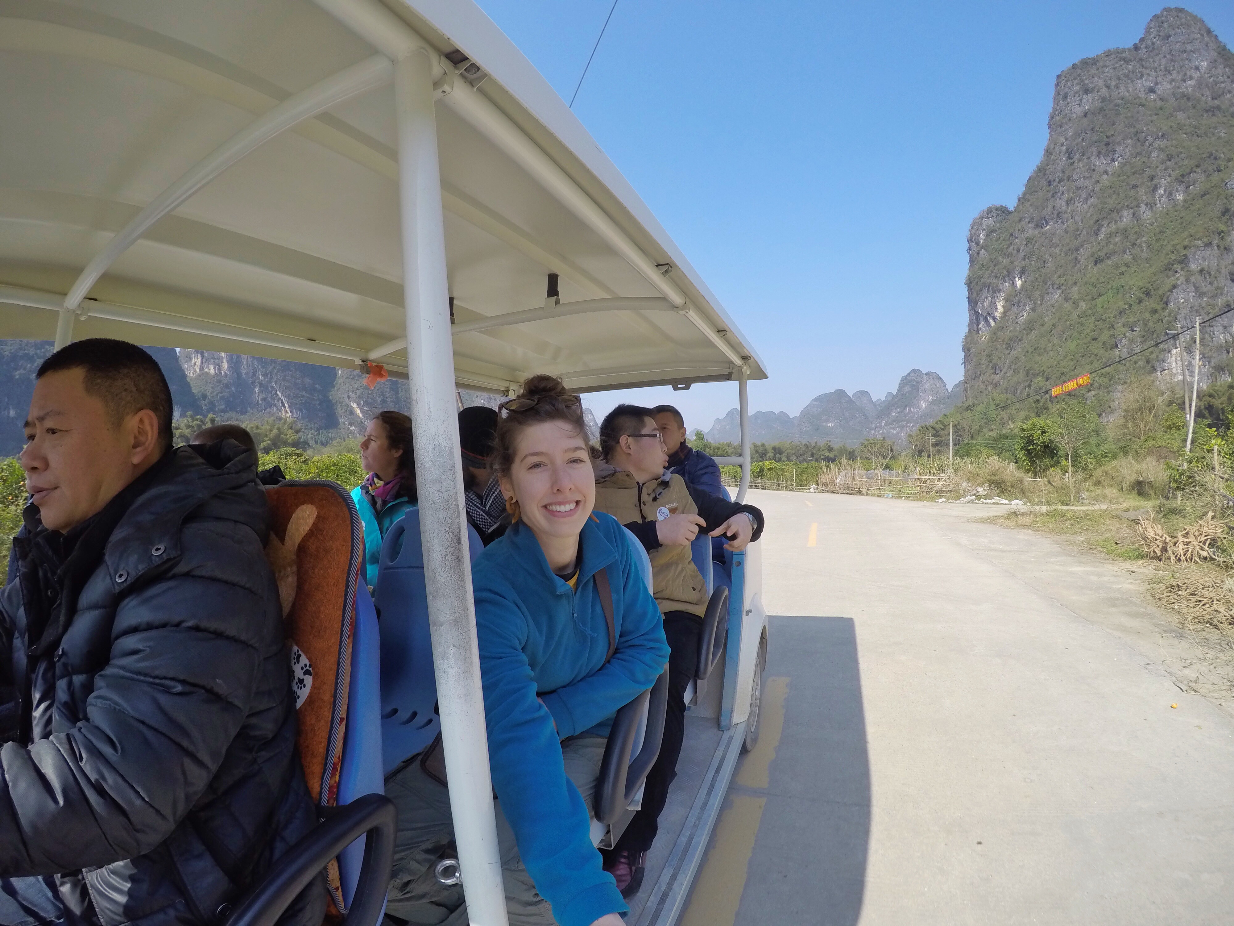 In the meantime our ‘tour guide’ blared through the speakers above our head about where we were going and trying to up-sale an extra tour. She spoke English, but far to fast and her strong accent made it impossible to understand. Craig and I totally got the giggles and had to hide behind the seats infront. We particularly liked it when she said “Guilin iz a smoll city o’ omly five ‘undred miyyion” – did she just say 500 million?!? And then after each English speech she’d say “‘ou can pwactice your Chinese by listoning ‘o me smeak” and then she’d spiel off the fastest Chinese you’ve ever heard and me and Craig were dying behind the chairs in hysterics.