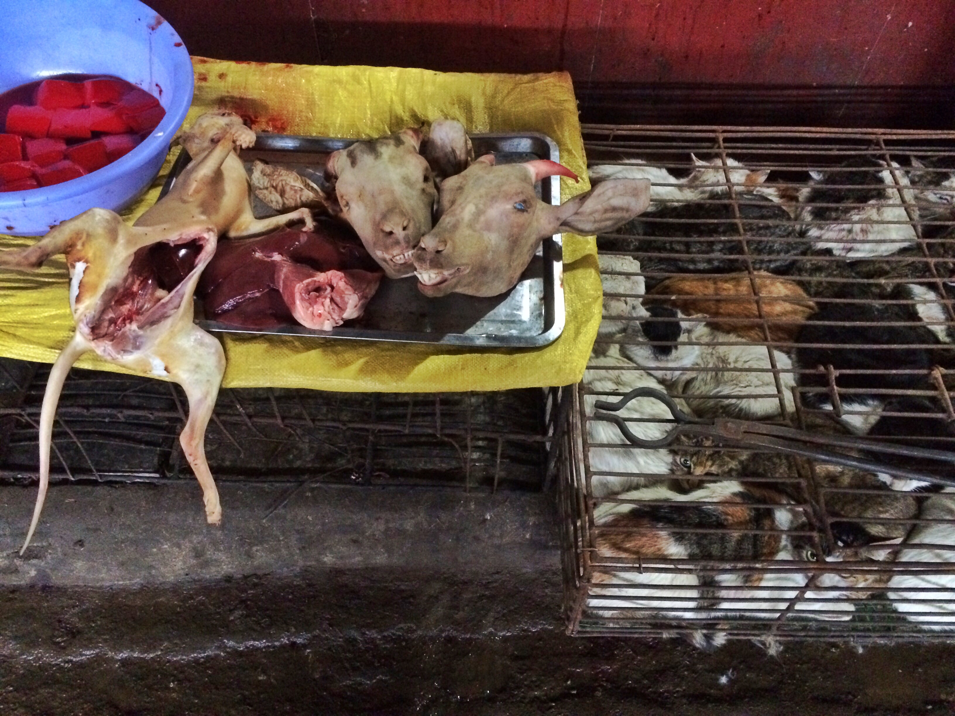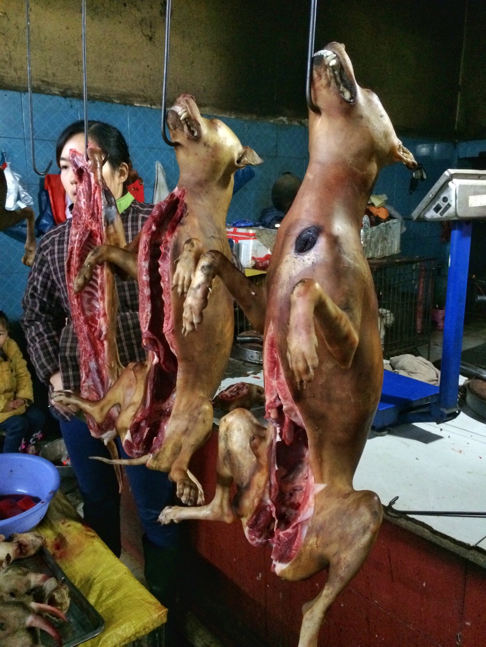 I don’t know if the dogs are farmed, or stray, if their stray it sounds awful but at least they’re being used for food unlike western countries killing them just because they haven’t been re-homed in time. Even still it wasn’t a pleasant place.