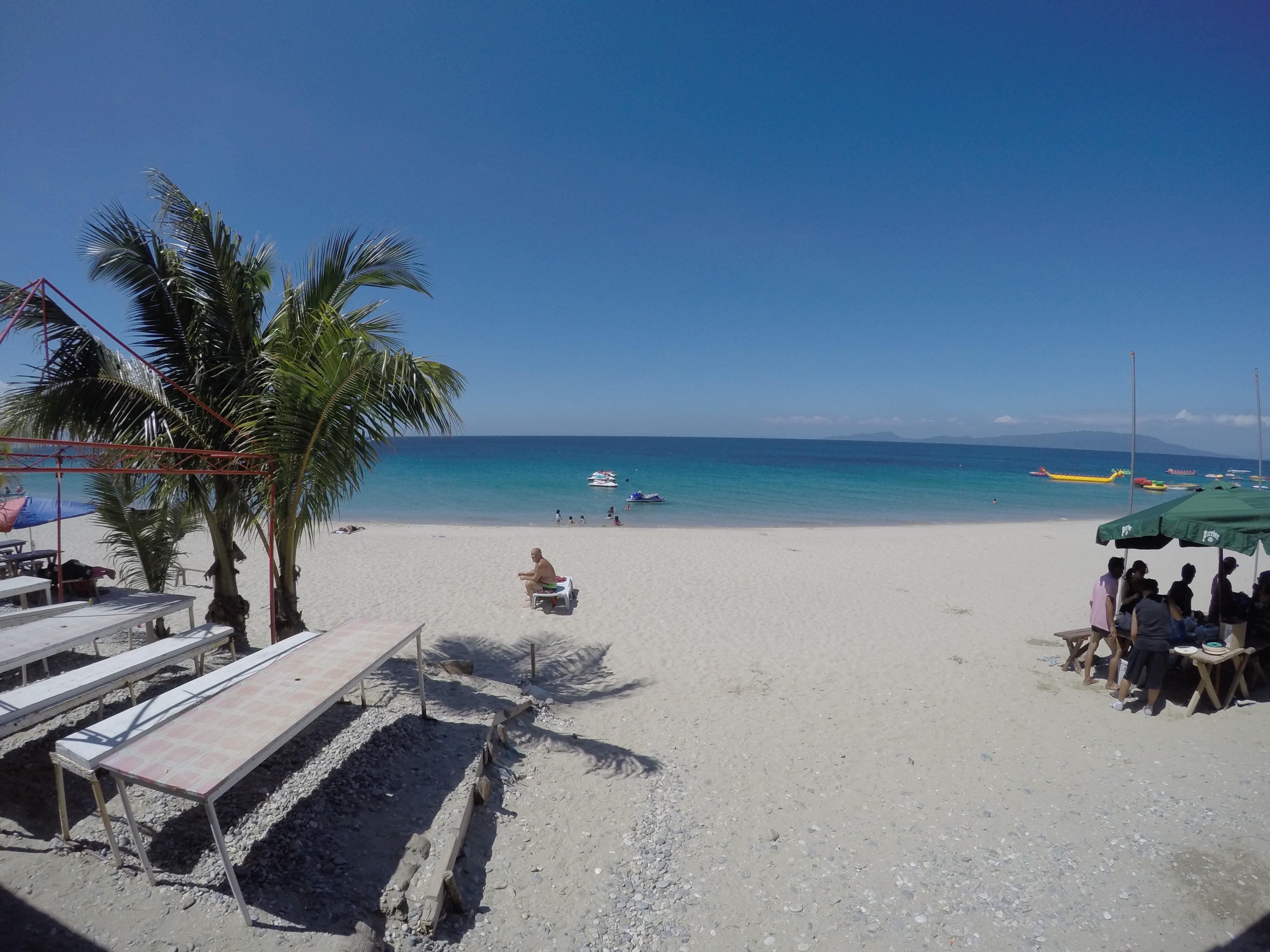 We treated ourselves to a parasail which we had done once before in India and it was quite the adrenaline rush. Here it wasn’t so scary, maybe because we’d done it before or maybe we just felt safer with a Filipino company. We were put onto a boat and strapped into a nappy-like harness. When we were way out in the deep blue ocean we were sat down on the back of the boat and strapped onto the parasail. It was all rather frantic and we were quickly swept away off the back of the boat and flew up into the air. As we got higher we were jolted and I panicked but Craig said they were just letting the rope out so up we went even higher than before. I don’t know how high we were but I didn’t think we’d survive a fall. It was great fun though and pretty exciting when the wind gusts swayed us from side to side. It lasted over 20 minutes and was so uncomfortable. Craigs manly-hood was being compressed by the nappy strap which he’d totally fallen through, whereas my harness was caught on my bum cheeks and kept pulling my skin. I was too scared to relax and fall totally into the harness incase it failed me so I just let it tug uncomfortably.