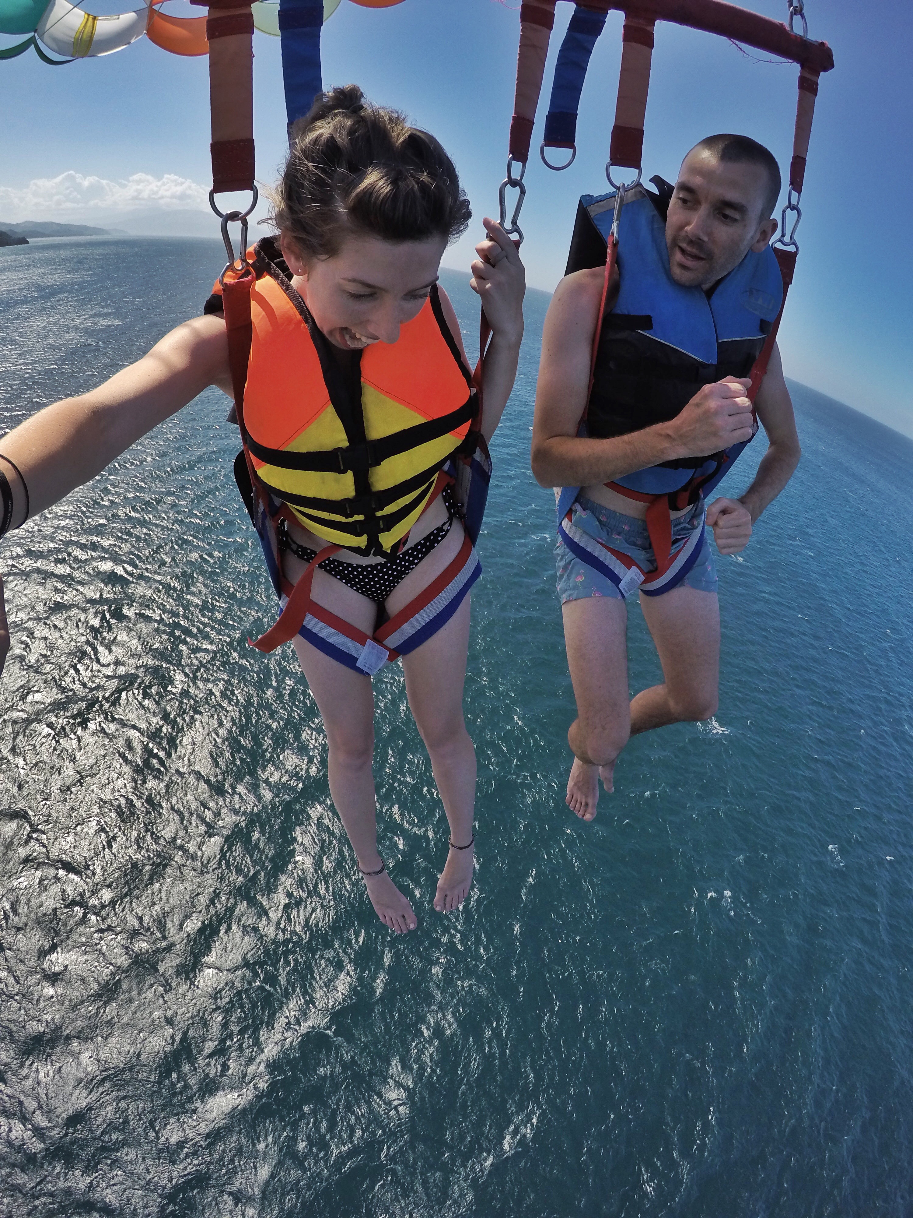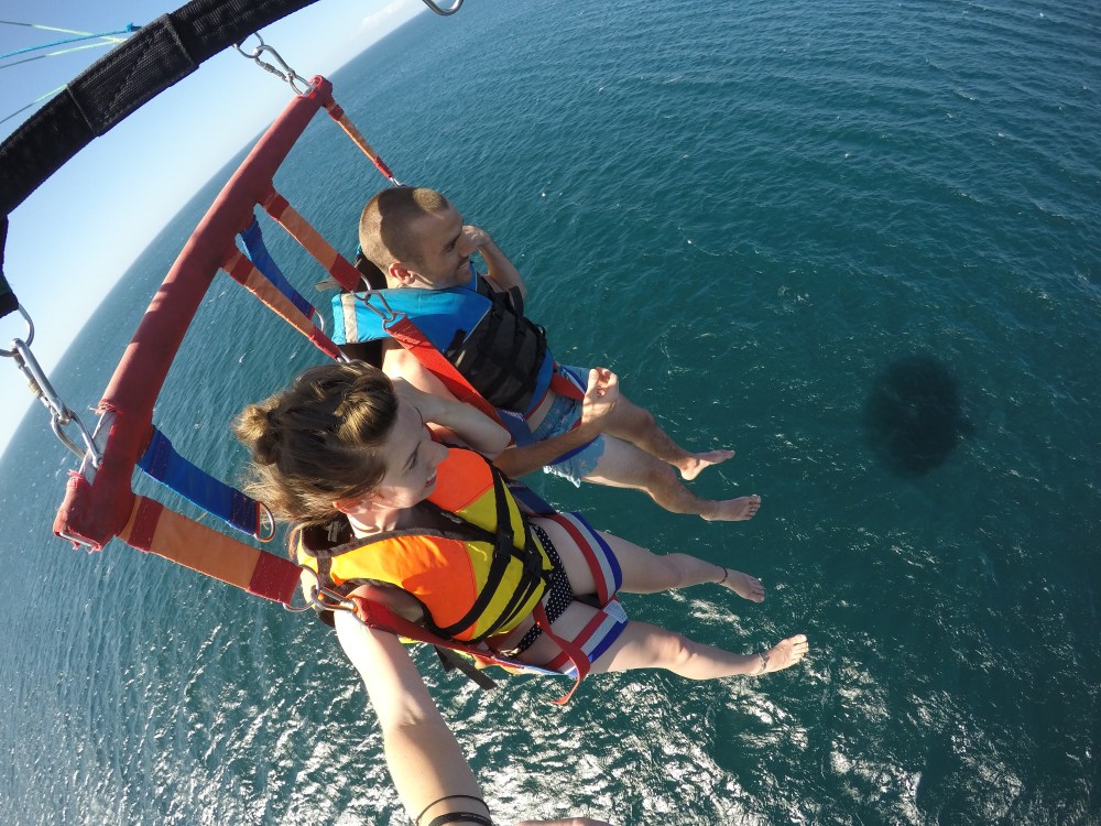 As the two workers began to pull us back onto the boat they seemed to be telling us to put our legs straight out for the landing. This was totally impossible for Craig who was beginning to lose circulation in his legs. We landed fine though and I was quickly unstrapped and ready to move away but Craigs rookie worker only undid one of his straps and my guy said ‘wait your still alive!!’ and the parasail was desperately trying to toss Craig overboard. It was a bit scary at the time but we laughed about the unprofessionalism afterwards.