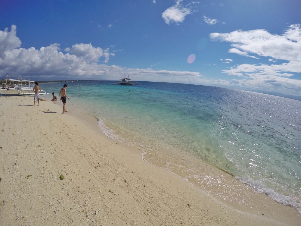 Panagsama Beach in Moalboal was much smaller and more chilled than we’d anticipated. A dirt track led close to the shore of a rocky beach and was lined with bars and restaurants. We hired out a motorbike to visit some sights in the area as it was cheaper to do this than get public transport.