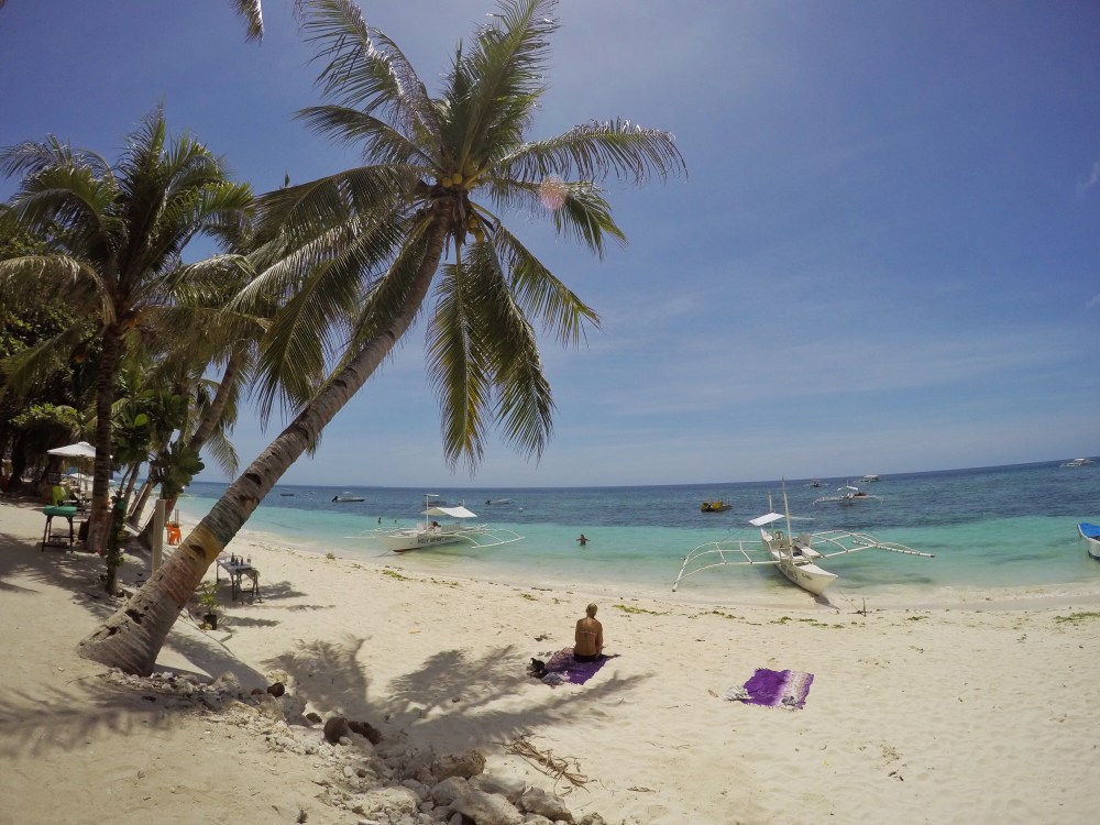 We based ourselves in Alona Beach, a popular stretch of white sand and clear blue sea. We thought it was rather pleasant but a lot of people complain about how busy it is, but maybe we were there at a good time. We had to wake super early for our 6am island hopping trip where seeing Dolphins meant this early start…luckily it paid off! We saw about 20 or so Dolphins around the area but there were also a lot of boats which was a shame and I didn’t like it how we’d spot some Dolphins and all the boats would charge that way. We did have a dolphin jump infront of our bow which was neat. There were no big groups sadly but about 6 swam through the waters infront of us with a couple doing leaps in and out the water and in the distance was a more acrobatic one. But it wasn’t as good as the large pod we’d seen by chance on the boat leaving Apo Island who must’ve been spinner Dolphins judging by their huge leaps and jumps out the water!