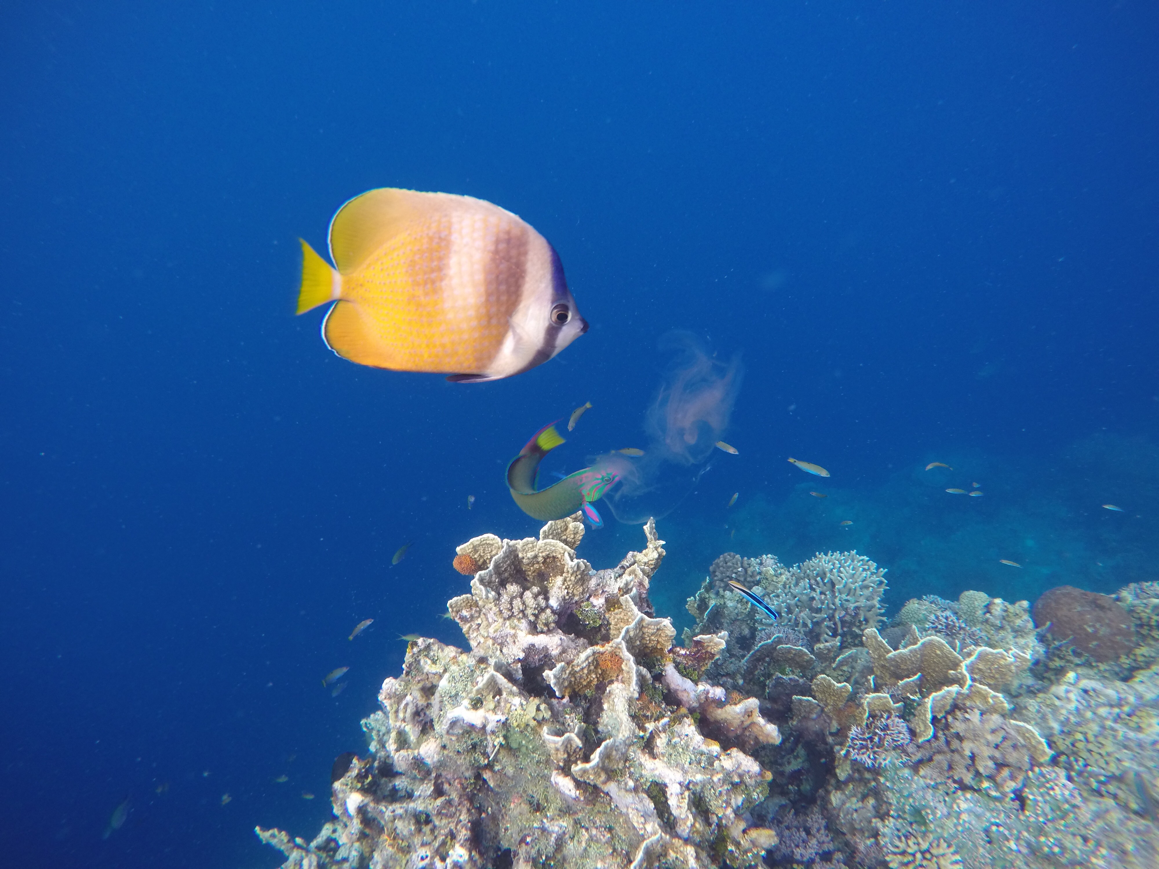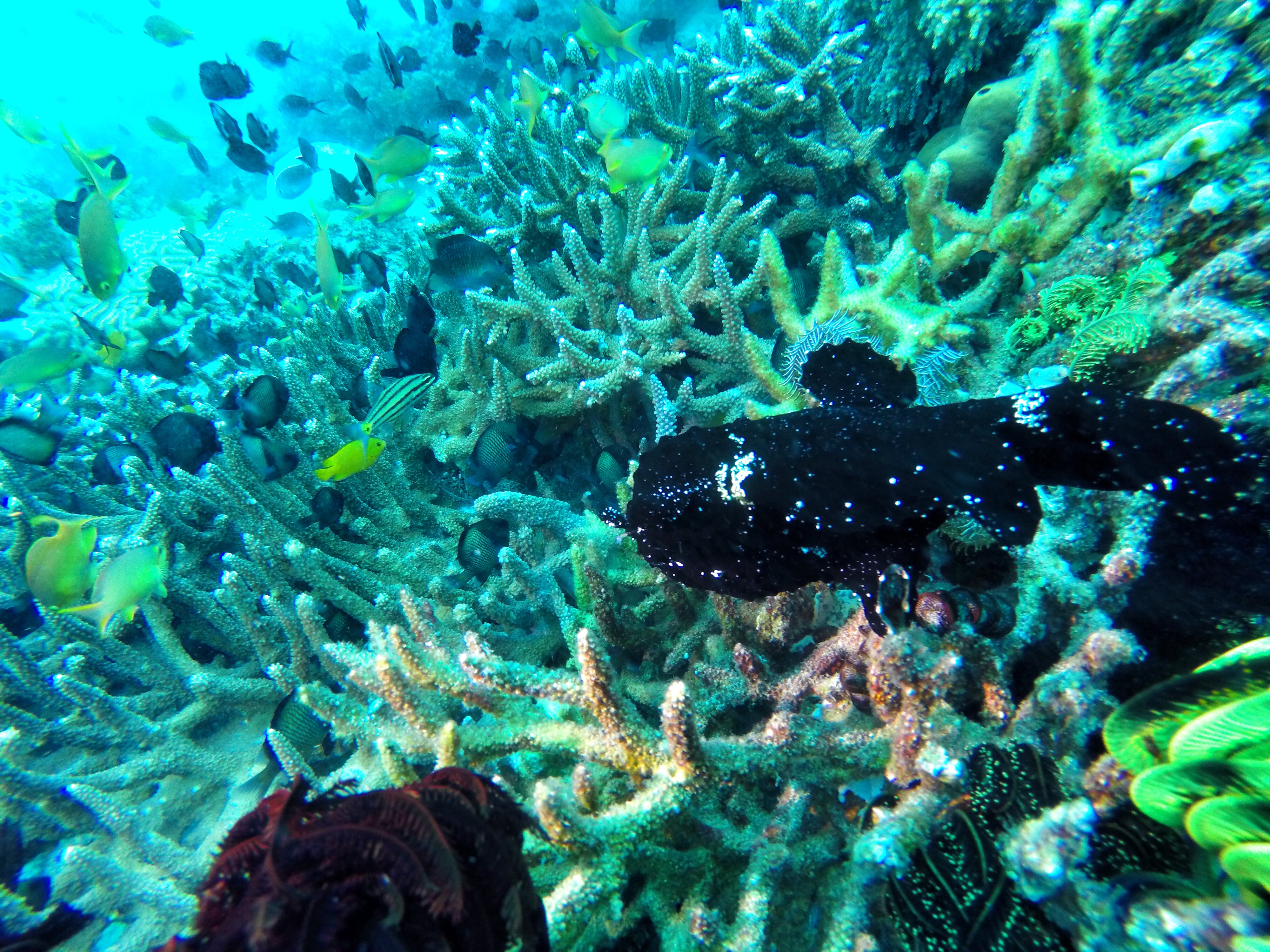 The next stop was Balicasag Island, one of the Philippines top dive sites. We were diving here tomorrow so didn’t really care about snorkelling but I’m so glad we did. As soon as we dunked our heads underwater the sea life looked top notch. We were above a deep wall but the visibility was great and we could see lots of potential for the dive tomorrow with the big fish like giant Trevally hanging out in the depths. The sea was such a nice dark blue colour and my GoPro managed to capture some awesome shots of the fish. There were clown fish everywhere, some hid frantically in the swaying soft coral while others were totally fearless and tried to scare us away. We saw lots of jellyfish and one type was awesome with what seemed like electric lights going through its body. Some fish had congregated around a dead jellyfish and were all nibbling it. There was a nice variety of sea life and two flat navy and yellow fish were following each other in a tight circle like they were doing a choreographed dance or mating ritual. We saw three turtles too, it was really great snorkelling.