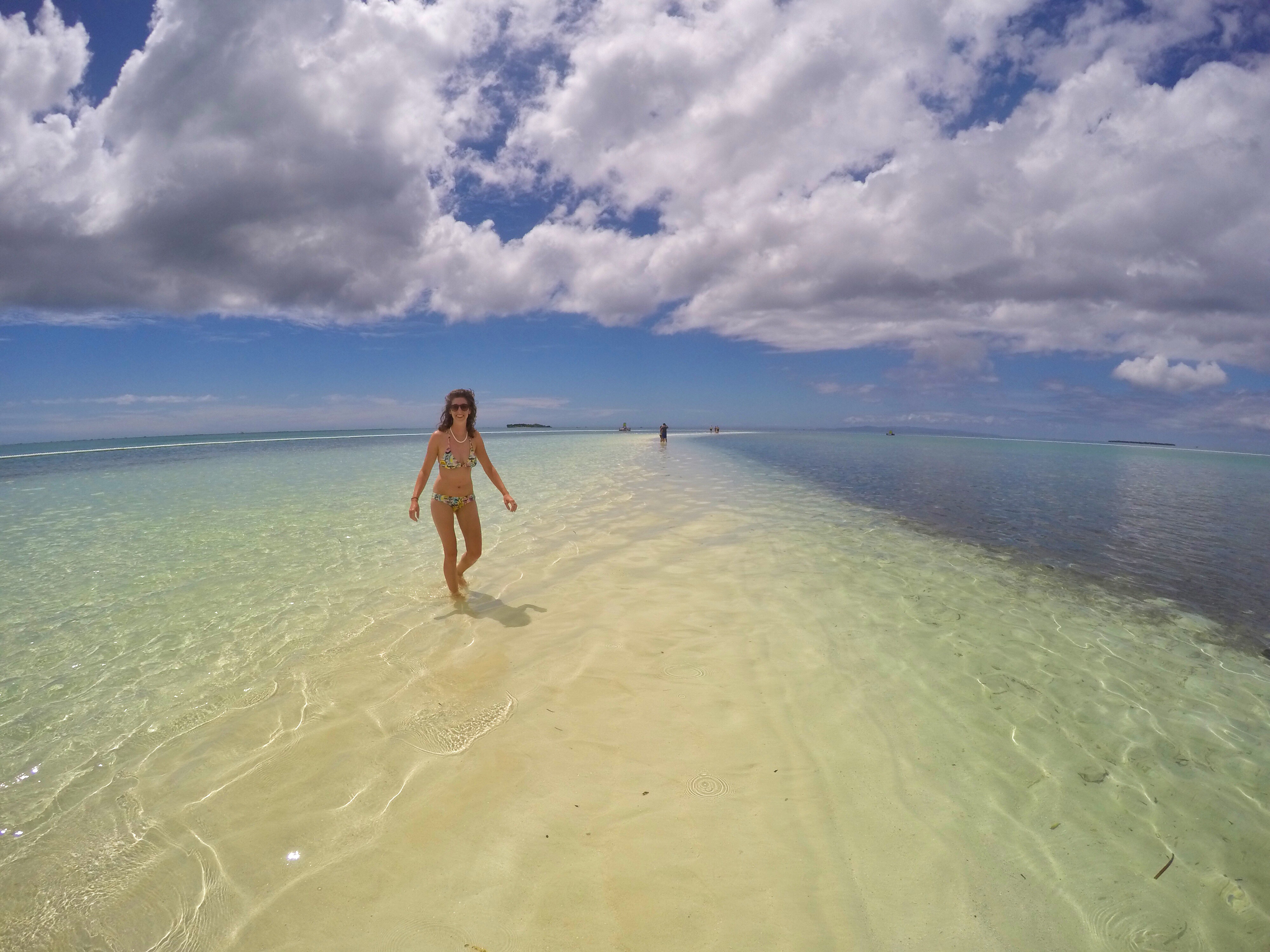 The weather clouded over a bit which made it look like we were walking on water as the water all went grey, then the sun would pop out and we were back in paradise. When we headed back to the island 10 minutes later the water had risen even more and we were walking through almost knee deep water.