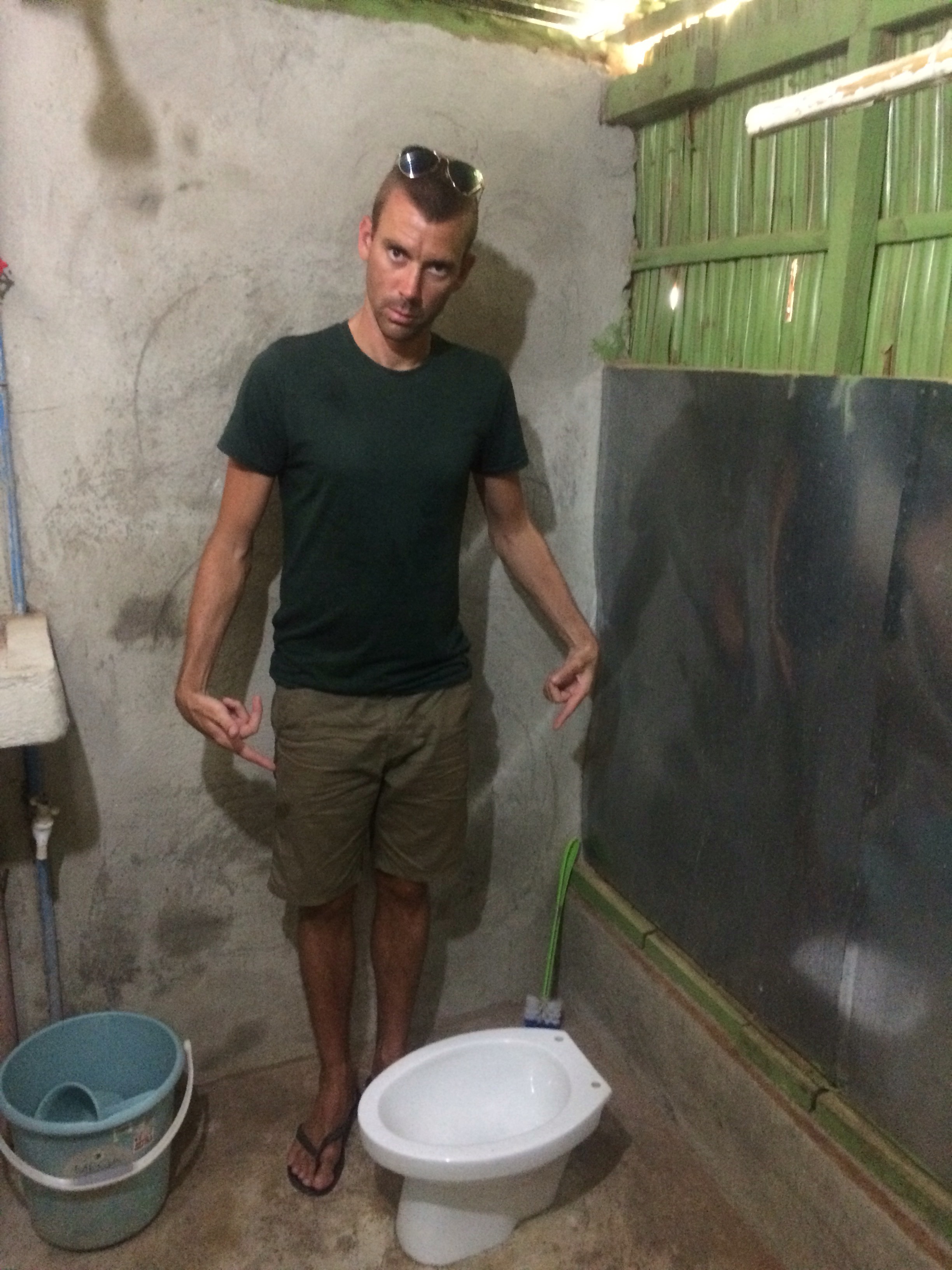 When I went back to our hut on my own, I had my pants down ready for a wee and then I spotted a huge thick yucky spider on the wall under the sink and I sort of froze. Not what I wanted to see, the wee waited while I frantically smacked the giant with my flip flop missing it on a few occasions but finally I won. I sat on the loo feeling like a hero but with no one to share the moment with…oh wait, I can share it with the cockroach that was on the sink right at my eye level. He was even tricker to kill, those little legs can bloody move and he was lightning fast! I triumphantly cleared up the carcasses and headed back out to the room for more mozzie repellent. In a split second another huge spider had ran past my foot and up the wall, I smacked him so hard with my flip flop that the wicker wall sprung back and he vanished behind it. Oh dear. Craigs face went very pale when I told him that one was potentially still alive in the room!