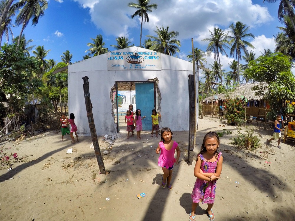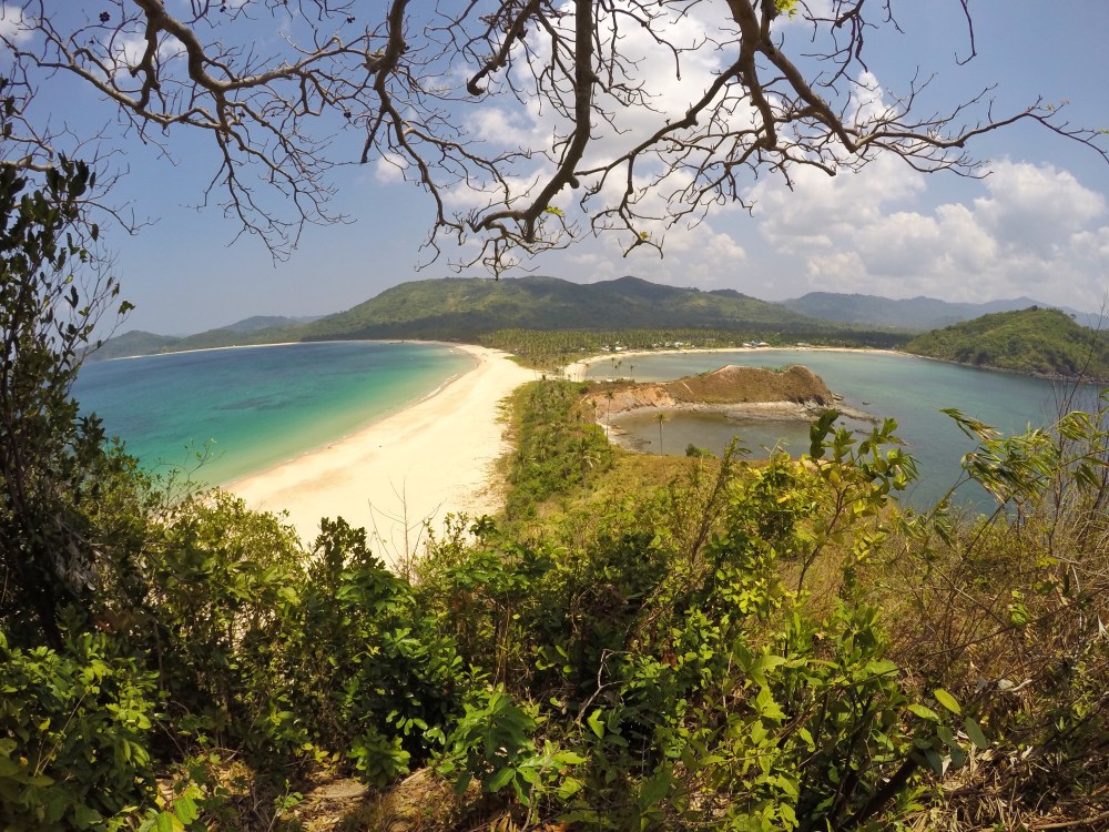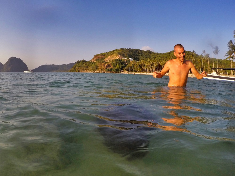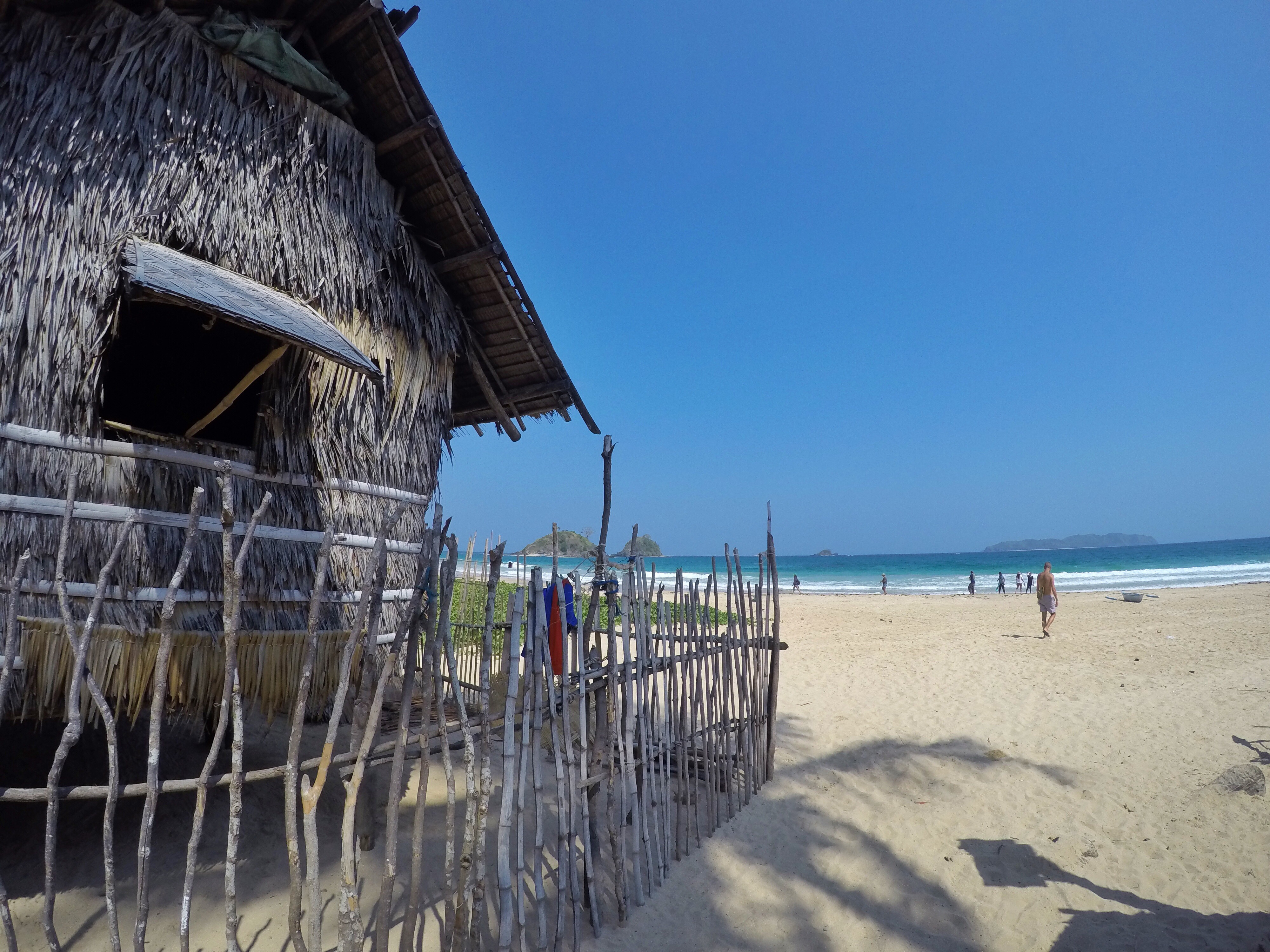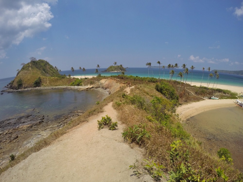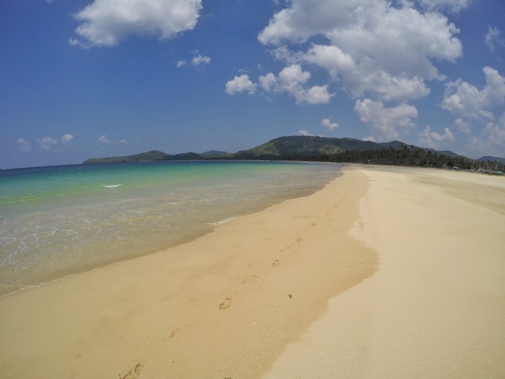 This area is known for having twin beaches and as the road split we decided to take the left fork and ended up on beautiful Calitang Beach. Some ladies at a small eatery said we could park our bike there for free and as they had a cheap menu we agreed to have lunch their later. The waters were so calm and the sea so clear. It was rocky in areas but it didn’t matter when you could clearly see where to step. We had a little swim and then headed round the bay to a hill at the end. A trail led up and an incredible view was unveiled. The twin beaches curved in ‘C’ shapes on either side. Nacpan was totally different, the water was intensely blue and the sand pure white, all 4km or so of it! We instantly decided that we had to stay here, it was too beautiful of an area to just hang around a few hours and we had planned to spend two more days in Port Barton on our way back south but screw that, we wanted paradise and this ticked all the boxes. Besides we hated how Port Barton scammed tourists by charging outrageous fees for transport.