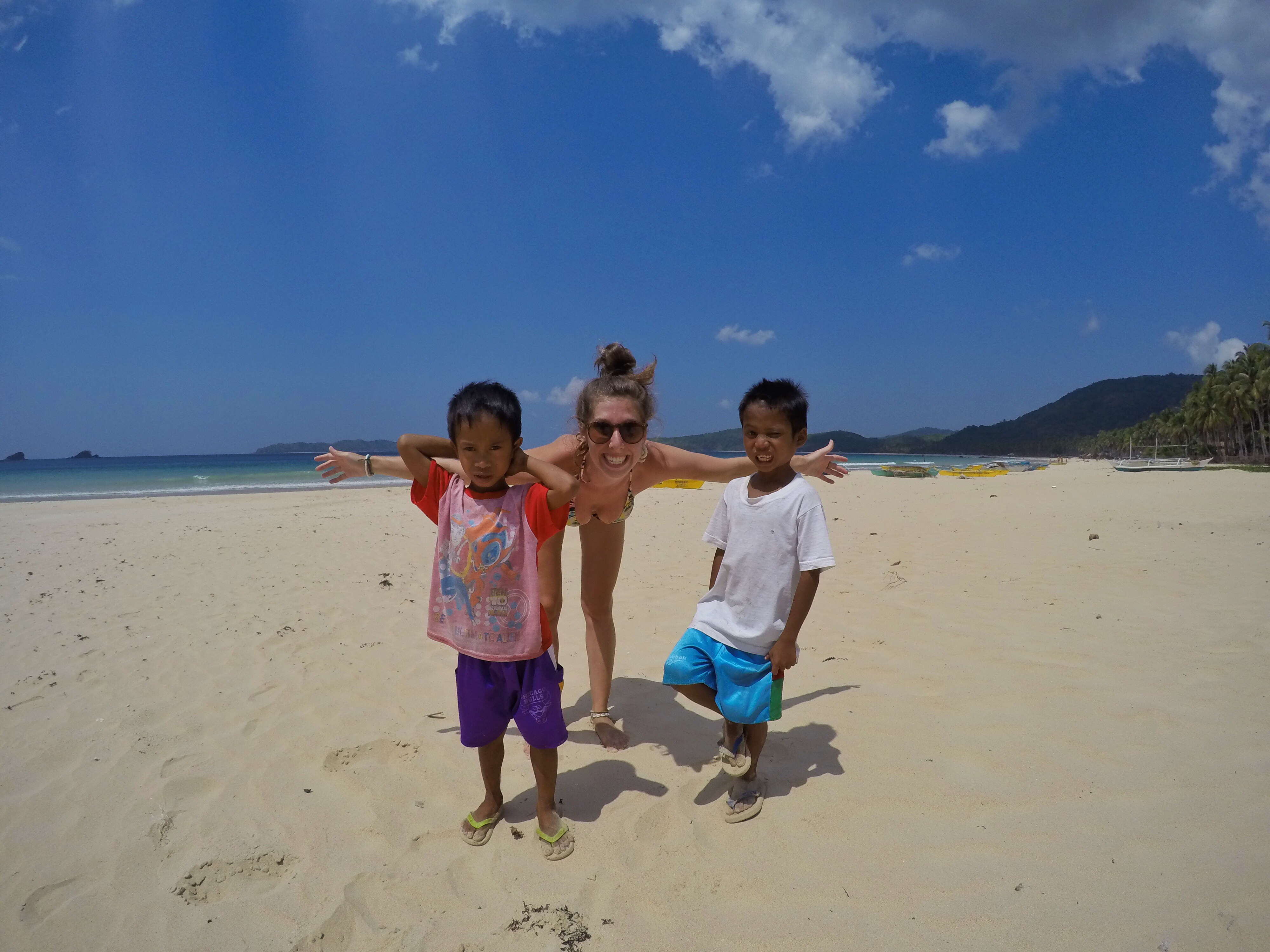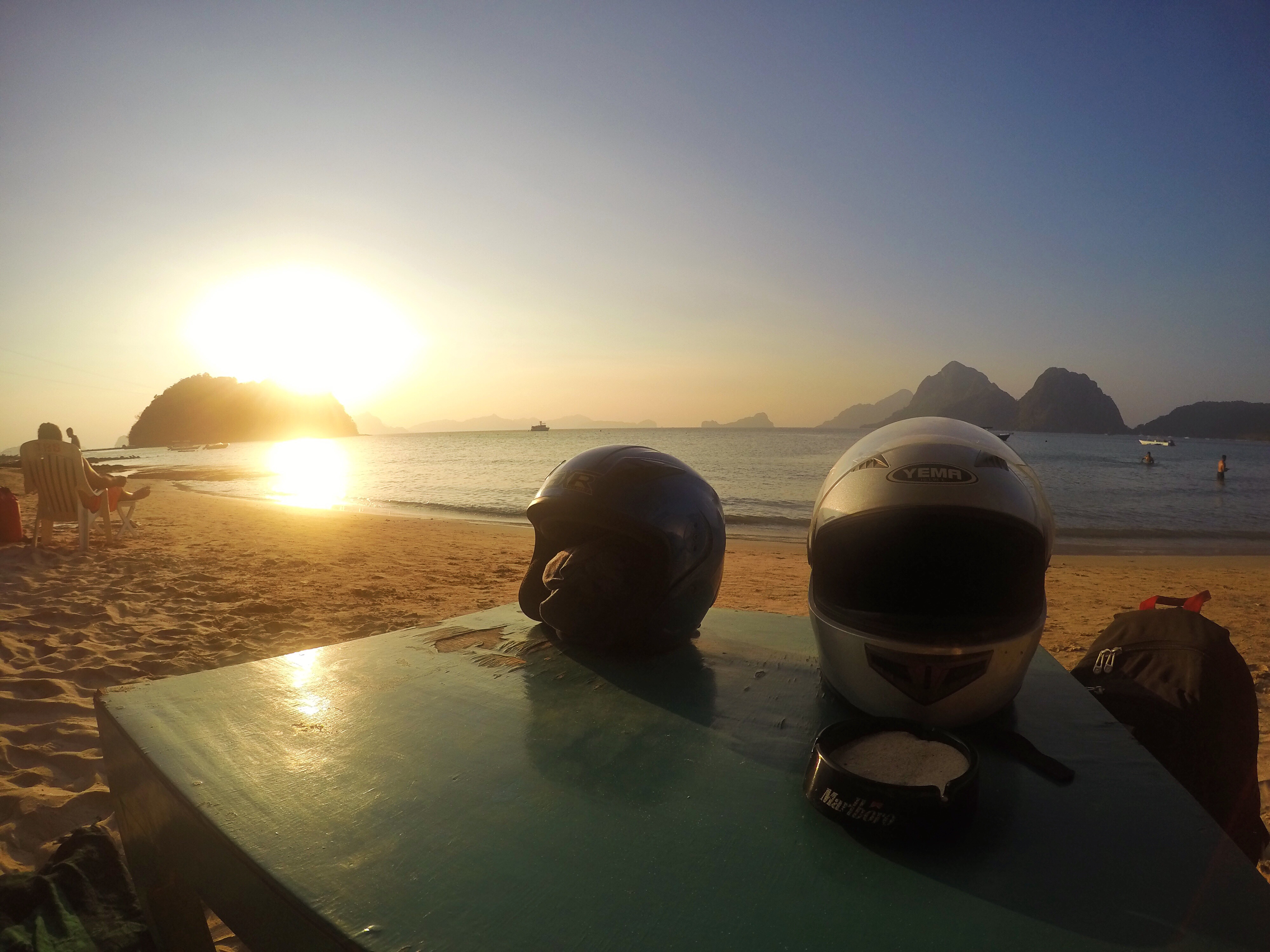 We hired a motor bike to visit some beaches around El Nido and headed north to Nacpan Beach. The last 5km were dirt roads and quite nasty but nothing my chauffeur, I mean Craig, couldn’t handle. Unlike some other backpackers we saw who toppled sideways on some soft sand. It explains all the bandaged right calves we’ve seen from people falling with the hot engine on them.