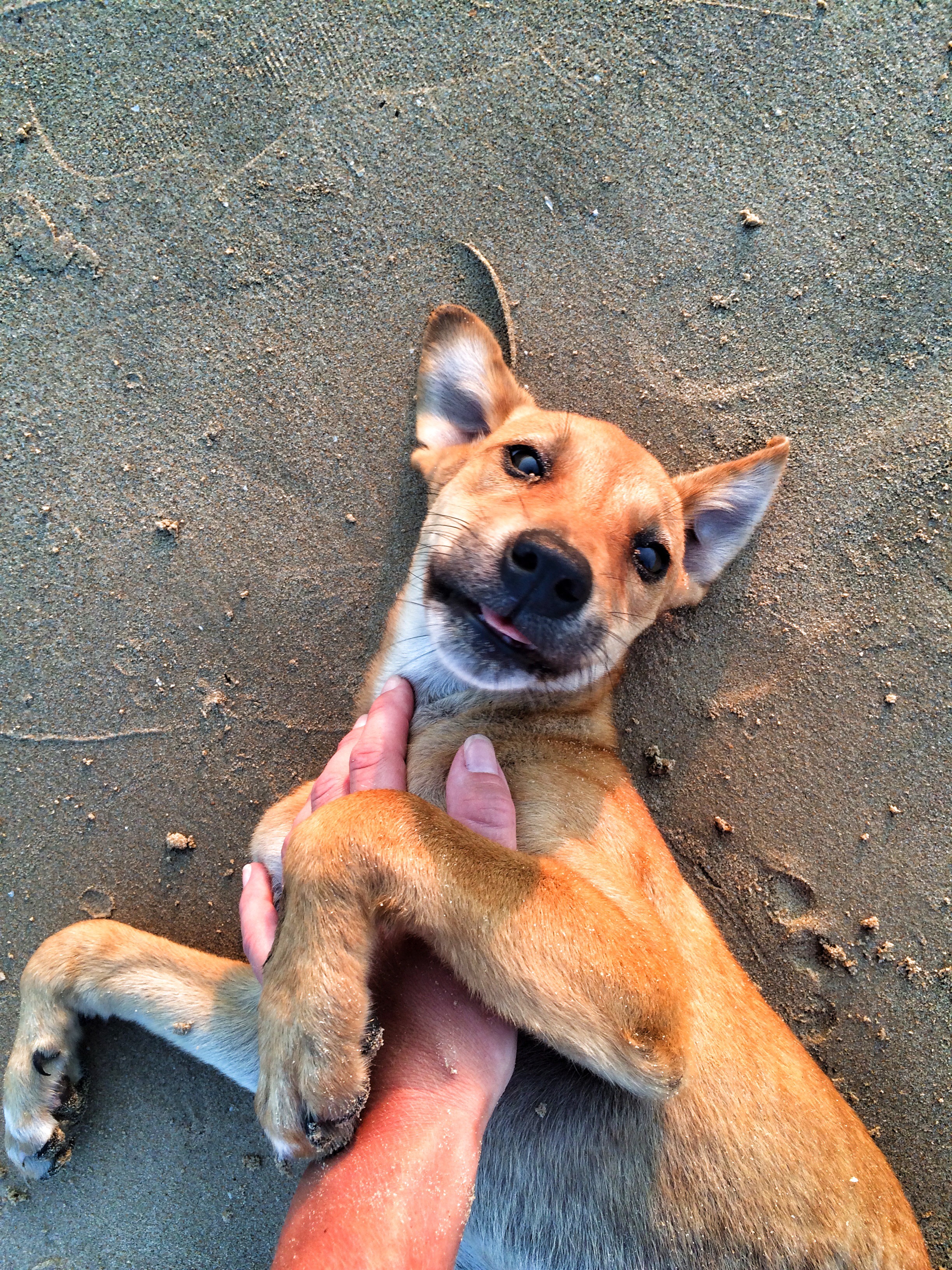 We loved the place already but then we saw some rustic Nipa huts along the beach and took a wonder in. It was such a sweet village, handmade huts, cockerels and pigs around every house and super friendly locals. The village was full of dogs too and I spotted a stunning wee puppy a lovely caramel colour. I carefully presented my hand out for a stroke and she instantly collapsed sideways, waved her legs in the air and whimpered till she got a belly rub. Man she was the cutest!! Right, we have to come back here now, so we popped into some grounds with a couple cottages, got a good price for a room and agreed to come back on good Friday.